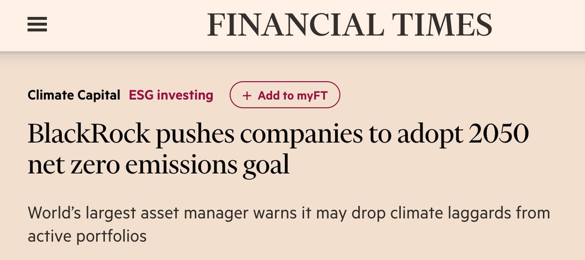BlackRock, el principal fondo de inversiones del mundo, impone a las empresas en las que invierte que asuman los principios desindustrializadores del capitalismo verde (FUENTE)