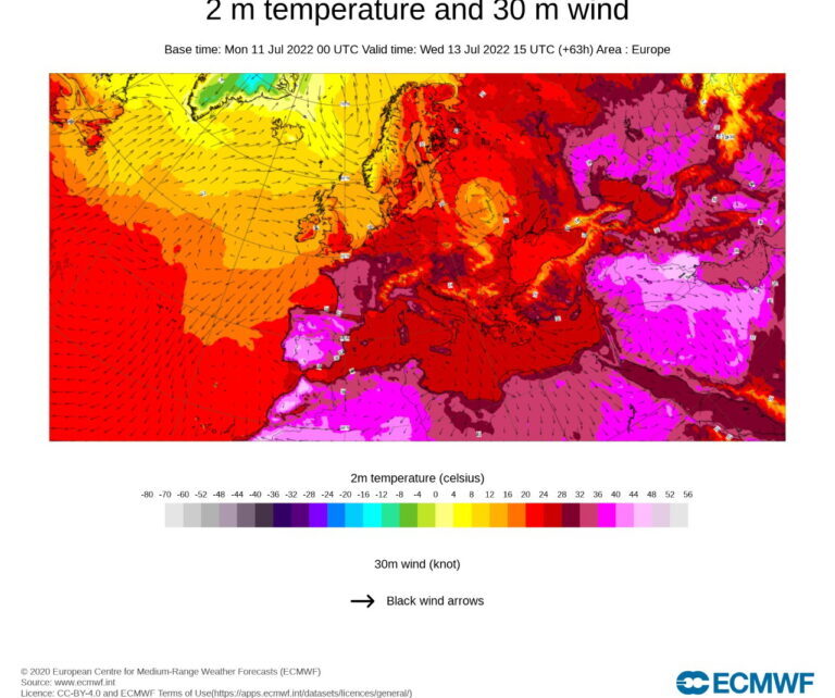 El calor extremo en el oeste del continente europeo está provocando peligrosos incendios forestales en Francia, España y Grecia, así como una sequía sin precedentes en Italia y Portugal, país que el 19 de julio llegó a 47 grados centígrados. El Reino Unido alcanzó ese martes más de 40 grados centígrados, la marca más elevada registrada hasta ahora en ese país. Las temperaturas explotaron en Bélgica y los Países Bajos. Hasta el miércoles 20, sin embargo, no se había superado en Europa el récord de 2021, los 48,8 grados de Sicilia.